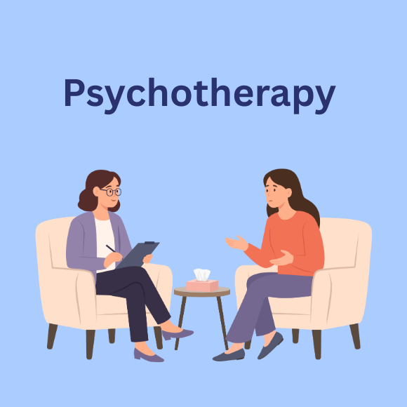 Psychotherapy focuses on emotional understanding, behavior patterns, and thought processes through structured talk therapy. Psychiatric consultation involves medical evaluation and medication if needed. Both services can complement each other based on the client’s condition.